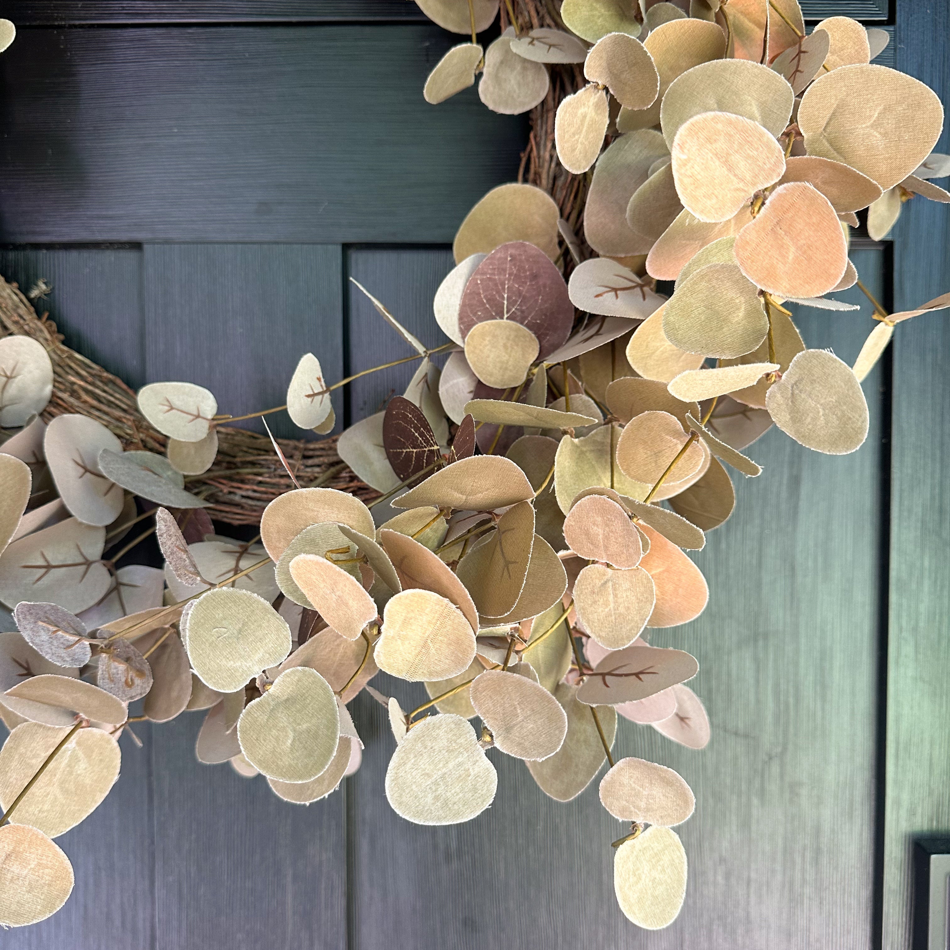 Welcome the new season with our Two-Tone Eucalyptus Wreath. It's simple yet earthy design will add a touch of natures natural tones to your front door or wall at home.