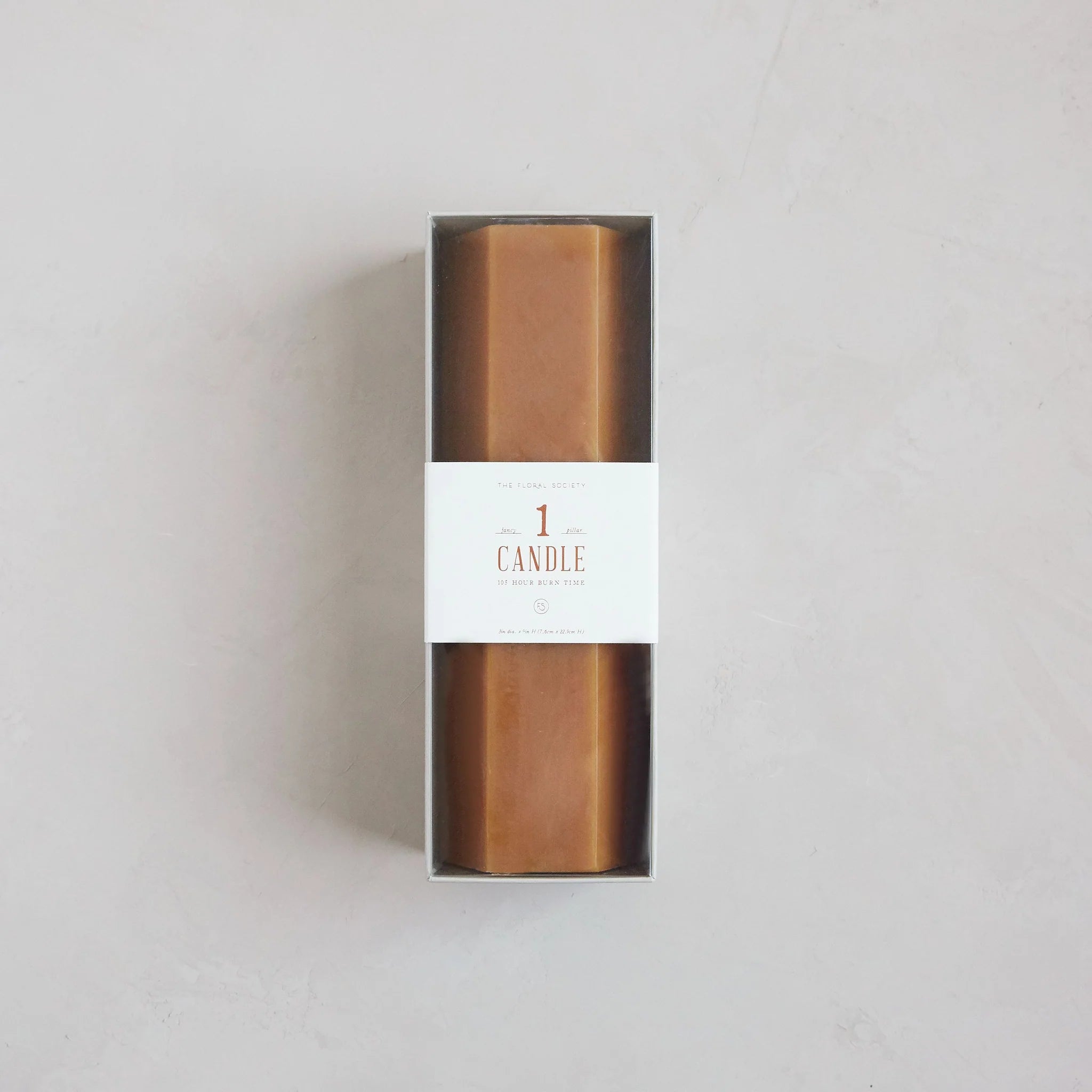 Hand-molded and embody a superior depth of color. A cotton wick is used for the cleanest burn, and the base is sized to fit a standard holder. Each 9” candle is crafted to burn for 105 hours. Subtle variations in wax depth and color opacity may occur.