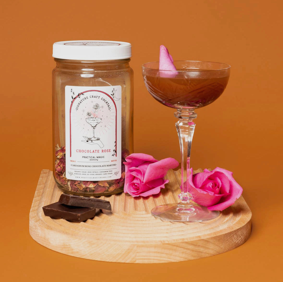 Rose Petals, Cacao, and Cardamom blend together magically to make a delicious martini. Just add vodka or spirit of choice and let sit for 1-3 days to make delicious, infused craft cocktails.